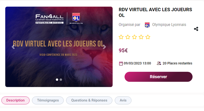 On vient de m'envoyer ça, je vous avoue que je suis assez fasciné. 95 balles la réunion Microsoft Teams avec 5 joueurs de l'OL, on touche au grandiose.