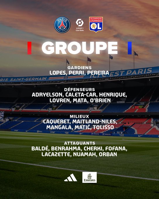 🦁 Nos 𝟮𝟭 𝗷𝗼𝘂𝗲𝘂𝗿𝘀 𝗰𝗼𝗻𝘃𝗼𝗾𝘂𝗲́𝘀 pour le déplacement à Paris, ce dimanche à 21h00 ! 🔴🔵 #PSGOL