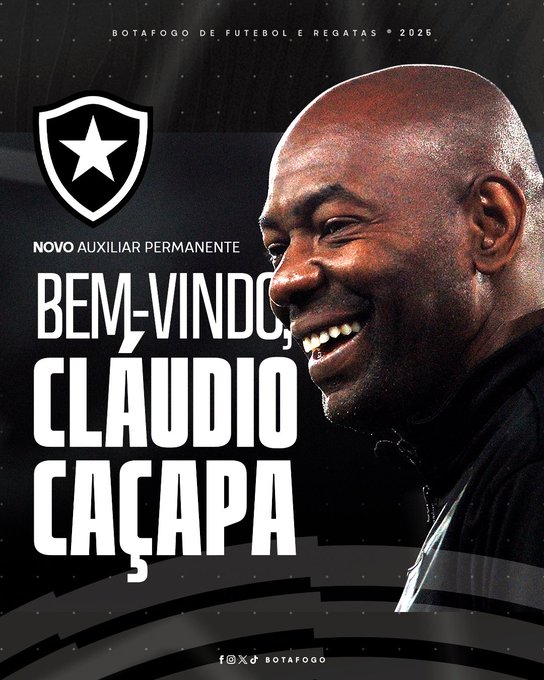 Cláudio Caçapa é o novo auxiliar técnico permanente do Botafogo. Com reconhecida passagem recente no Glorioso, Caçapa terá como a primeira missão o comando técnico interino da equipe até a chegada do novo treinador. Em 2023, Cláudio obteve resultados expressivos comandando a