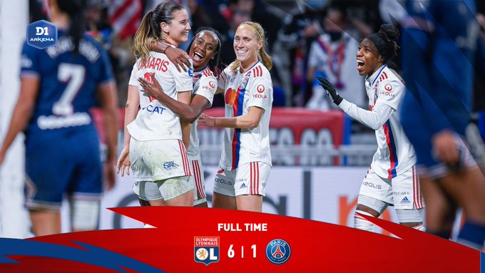 Quel match de nos joueuses ! Nos Lyonnaises s'imposent largement (6-1) face au @PSG_Feminines. 🦾🔴🔵 #OLPSG