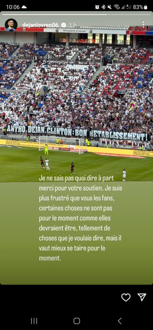Il y'a 1h, notre défenseur Dejan #Lovren a posté sur son Instagram ce message énigmatique 🤔 « Je ne sais pas quoi dire à part merci pour votre soutien. Je suis plus frustré que vous les fans, certaines choses ne sont pas pour le moment comme elles devraient être, tellement de