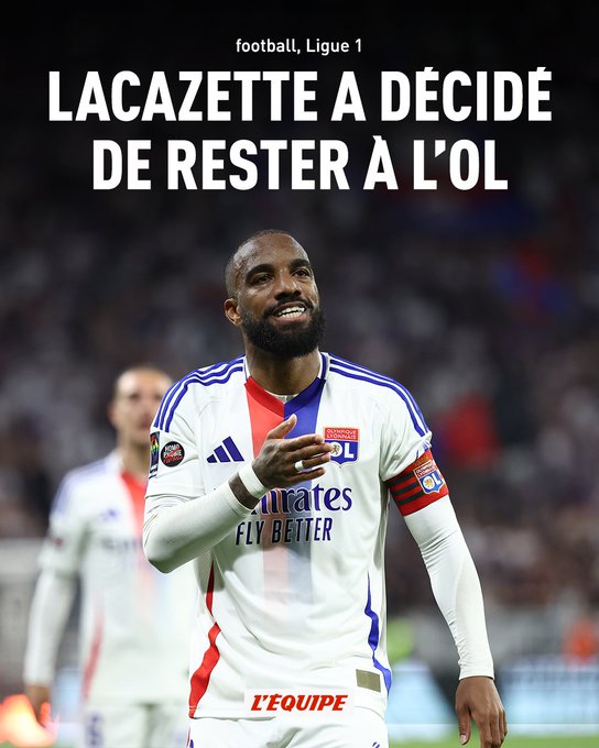 INFO L'ÉQUIPE. Malgré un pont d'or offert par l'Arabie saoudite, l'attaquant lyonnais Alexandre Lacazette a décidé de rester encore un an dans son club formateur pour y disputer la Coupe d'Europe. ow.ly/7sqz50SlVPb