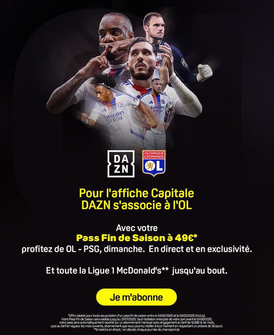 #OLPSG sera à suivre ce dimanche sur @DAZN_FR. Pour patienter, 4 OL-PSG de légende sont déjà disponibles gratuitement. Et bientôt, retrouvez @OLPLAY_Officiel sans surcoût sur la plateforme. 👉 dazn.com/fr-FR/welcome