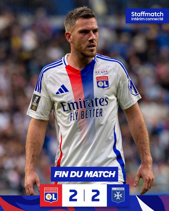 C'est terminé sur ce score de parité 🔚 Nos Gones partagent les points avec l'AJ Auxerre 🤝🔴🔵 2-2 #OLAJA