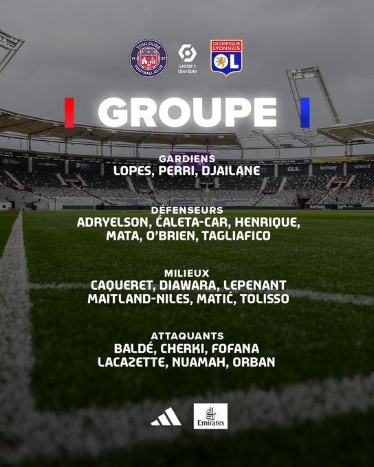 🚨 Voici la liste des 21 joueurs retenus pour le match de ce soir face à Toulouse 🔴🔵 #TFCOL