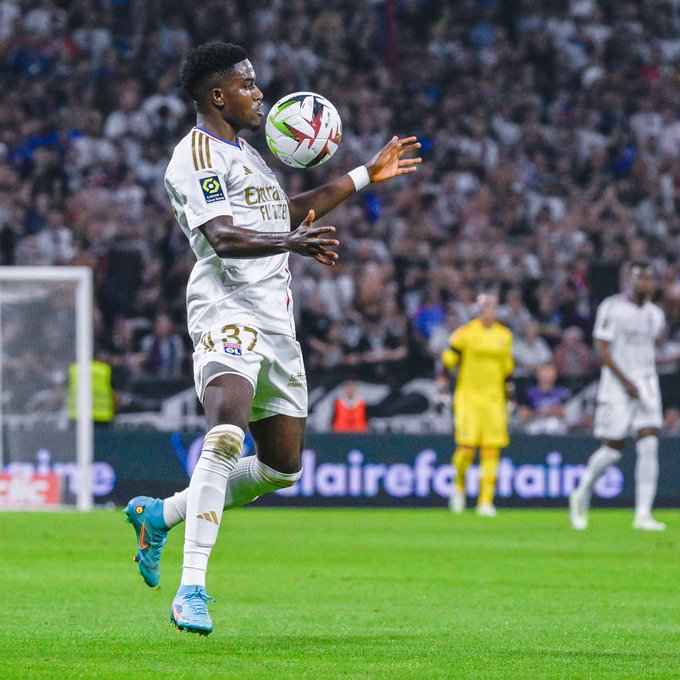 Première en 🔴 et 🔵 pour nos nouveaux joueurs Mama Baldé et @Nana_Nuamah10 lors de #OLPSG