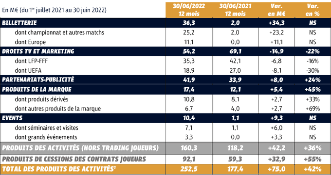 Dans le Rhône, on pouvait craindre des chiffres apocalyptiques. Finalement, l'heure est au soulagement et à l'optimisme. OL Groupe a publié l'activité de l'exercice 2021-2022, soit du 1er juillet 2021 au 30 juin 2022. La production s'élève à 252,5 millions d'euros. Un chiffre bien au-dessus de celui de la saison précédente, laquelle avait été grandement marquée par le Covid et les huis-clos. OL Groupe est en croissance de 42%, ses produits ont donc rapporté 75 millions d'euros de plus en un an.