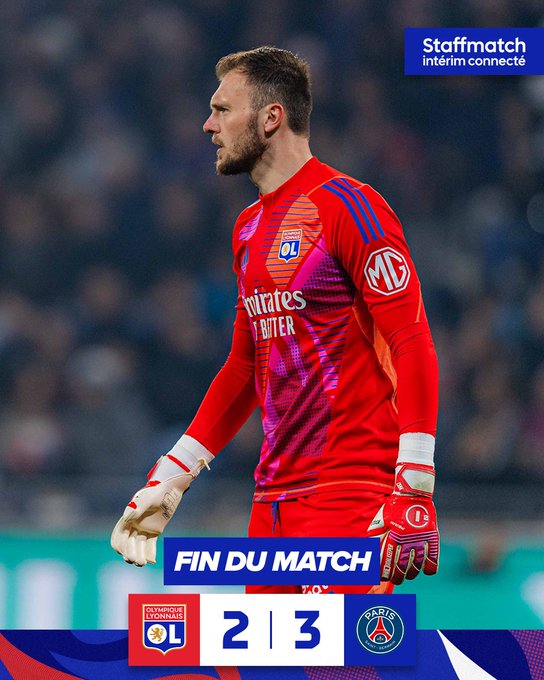 🔚 C'est terminé au @GroupamaStadium. Malgré une fin de match folle, nos Gones s'inclinent ce soir face au PSG 🔴🔵 2-3 #OLPSG