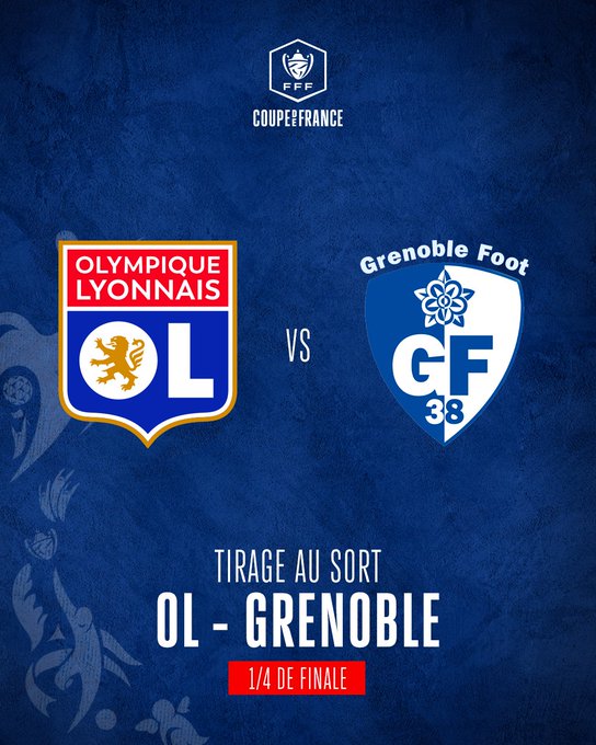 𝑫𝒊𝒓𝒆𝒄𝒕𝒊𝒐𝒏 𝒍𝒆𝒔 𝒒𝒖𝒂𝒓𝒕𝒔 🔴🔵 👉 Nous recevrons le @GF38_Officiel pour ce prochain tour de #CoupeDeFrance !
