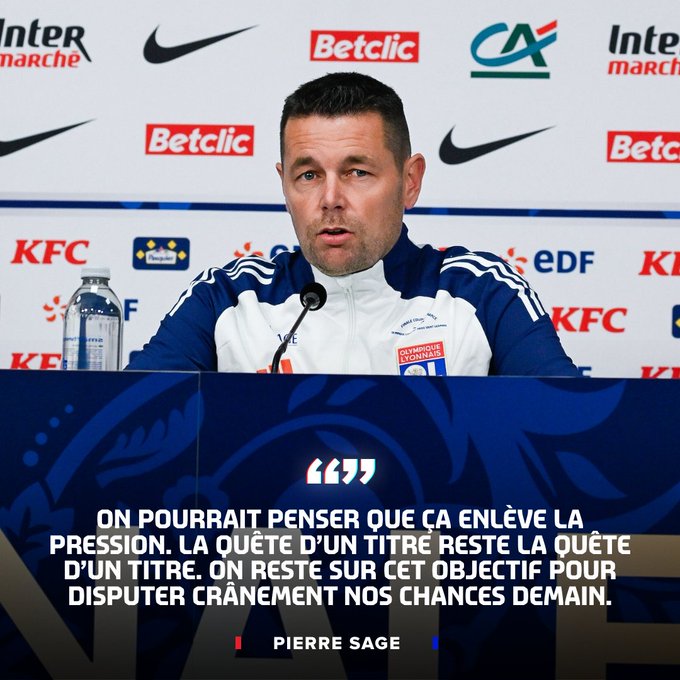 🗨 « La quête d’un titre reste la quête d’un titre » 🏆 🎙 A la veille de la finale de @coupedefrance, notre coach Pierre Sage évoque l’état d’esprit du groupe après la qualification en Europa League par le biais du championnat ! 🔴🔵 #OLPSG