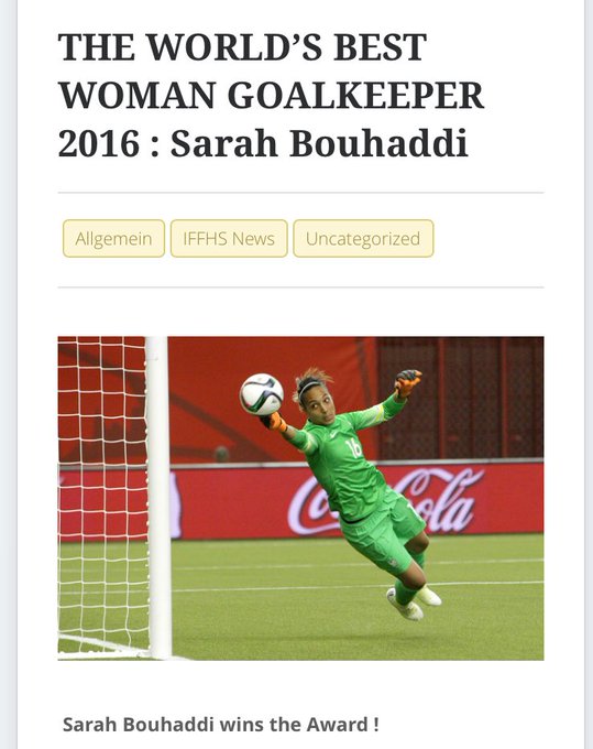 Gardienne de but de l'Olympique Lyonnais et de l'équipe de France, Sarah Bouhaddi a été désignée meilleure gardienne de but de l'année 2016 par la Fédération internationale de l'histoire du football et des statistiques. L'IFFHS, qui compile depuis 1984 toutes les statistiques sur les footballeurs, clubs et équipes nationales a désigné la joueuse française comme étant la plus douée cette année. Il est vrai qu'avec l'OL Sarah Bouhaddi a tout gagné cette saison (Coupe de France, D1, Ligue des champions), son bilan étant toutefois un tout petit peu moins brillant avec l'équipe de France féminine. La gardienne de l'Olympique Lyonnais et des Bleues succède à l'Américaine Hope Solo.