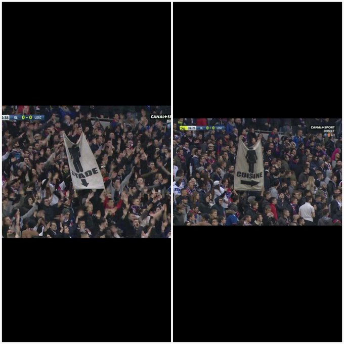 Supporters lyonnais... Pouvez-vous me donner des explications sur cette banderole : les hommes au stade, les femmes en cuisine 🤔? #égalité
