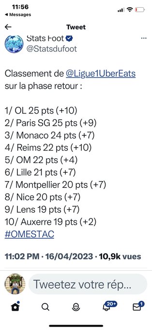 OL vit une saison encore très décevante et bien loin de ses ambitions initiales, force est de constater que les Gones finissent fort. Du moins en Ligue 1. Il apparait en effet que depuis le début de la phase retour, l'OL est premier du championnat, à égalité de points avec le PSG. De quoi faire la fierté de certains à Lyon, dont celle du président Jean-Michel Aulas, qui ne perd jamais une occasion de vanter les mérites de son club, même lorsque ce dernier vit des moments difficiles voire chaotiques. JMA s'est empressé de tweeter le classement dans lequel l'OL apparaît comme premier lors de cette phase retour. Un comportement qui a agacé pas mal de fans rhodaniens.