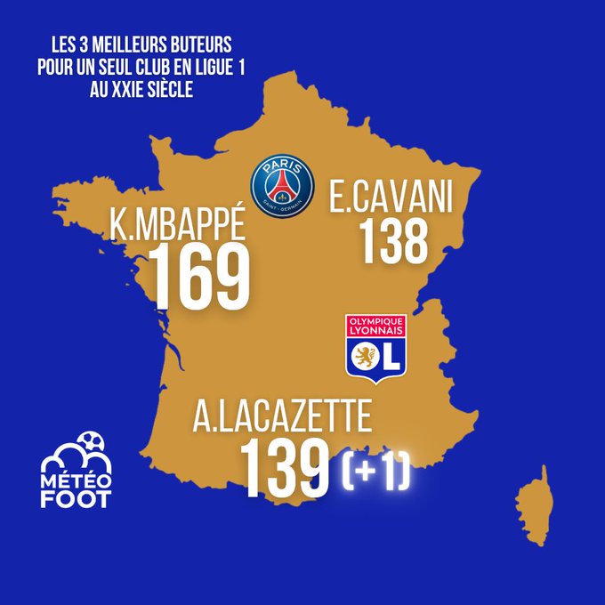 🔥🔥 A.Lacazette c'est du très très LOURD, avec son but hier soir, il dépasse "El Matador" E.Cavani..! ➡️ Les 3 meilleurs BUTEURS pour un seul club en Ligue 1 au XXIe siècle (@Statsdufoot) #Ligue1 #TeamOL @Zack_Nani @barthruzza