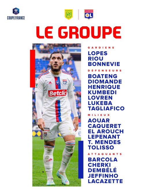 🦁 Nos 2⃣1⃣ Gones retenus pour la demi-finale de @coupedefrance face à Nantes 👊🔴🔵 #FCNOL | #CoupeDeFrance