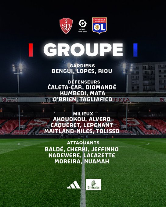 🚨 Notre coach Fabio Grosso a retenu un groupe de 2⃣2⃣ joueurs pour le déplacement à Brest ce samedi à 21h. 👊🔴🔵 #SB29OL