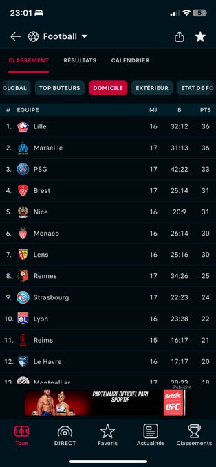 Voilà pourquoi les Marseillais, avec un total de 36 points sur 51 possibles, forment la deuxième meilleure équipe de Ligue 1 à domicile cette saison derrière Lille (36 points et une meilleure différence de buts, avec un match en moins à domicile). Le problème, et non des moindres, c’est que l’Olympique de Marseille réalise un exercice catastrophique hors de ses bases ! Avec seulement deux victoires en 16 déplacements, c’était à Lorient (2-4) et à Clermont (1-5), les deux derniers, le demi-finaliste de la C3 est 17e et avant-dernier au classement de la Ligue 1 à l’extérieur (11 points sur 48 possibles).
