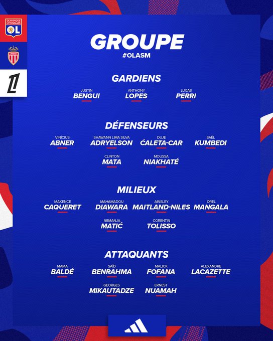 🦁 Notre groupe pour le premier match de la saison au @GroupamaStadium, ce samedi à 17h face à l'AS Monaco ! 👊🔴🔵 #OLASM