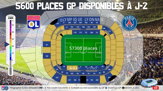 #OLPSG J-2 (17:30) Accélération soudaine des ventes grand public (le tarif en latéral sup à baissé de 130€ à 80€).
