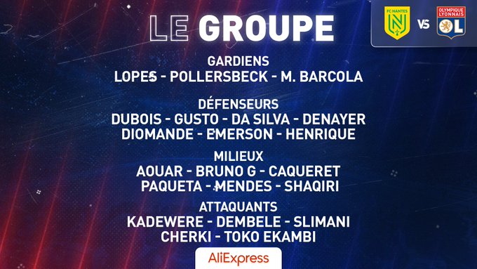 Le groupe retenu par Peter Bosz pour le déplacement à Nantes. 🔴🔵 #FCNOL