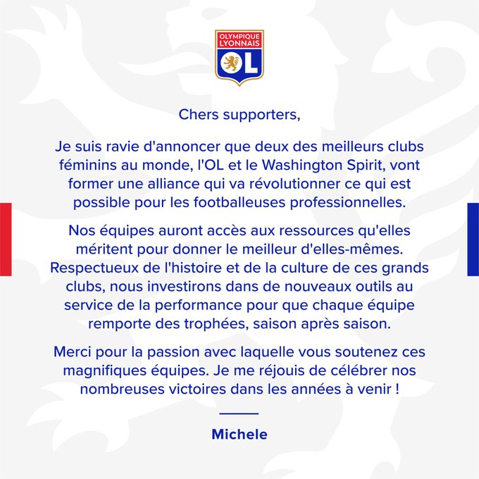 OL Groupe et Michele Kang forment un groupe mondial de football féminin. 🗞️👉 ol.fr/fr/actualites/…