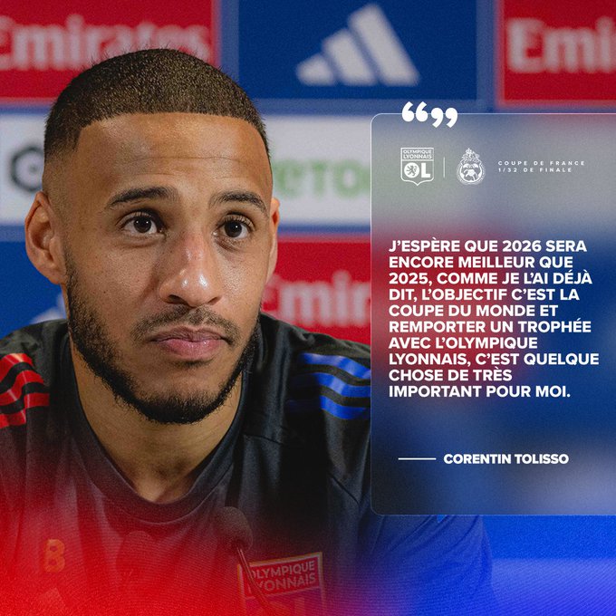 « Je me suis fixé des objectifs clairs. J’ai fait en sorte de tout mettre en place, je ne les ai pas encore tous atteints mais je suis sur la bonne voie. J’ai une approche différente des matchs. J’espère que 2026 sera aussi beau que 2025 pour mon cas personnel. Mes derniers objectifs sont de jouer la Coupe du monde, de marquer le plus de buts possibles et de gagner un trophée. J’ai envie d’avoir ce trophée avec l’Olympique Lyonnais, c’est très important pour moi », a énuméré le joueur formé au club rhodanien avant l’entrée en lice en Coupe de France contre Saint-Cyr Collonges (R1) dimanche.