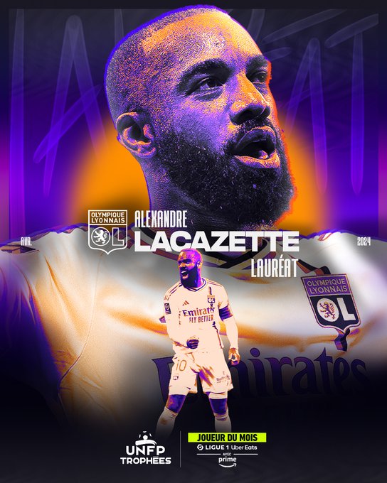 🦁 𝐋𝐈𝐎𝐍 𝐊𝐈𝐍𝐆 🦁 Alexandre Lacazette remporte le Trophée UNFP du Joueur du Mois d’Avril 🏆 Félicitations Alex ! 👏 #TropheesUNFP