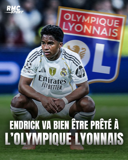 🔴 Endrick va bien être prêté à l'OL ! Les négociations ont abouti. L'attaquant brésilien du Real Madrid de 19 ans, Endrick, va bien être prêté à l'OL pour la seconde partie de saison. rmcsport.bfmtv.com/football/trans…