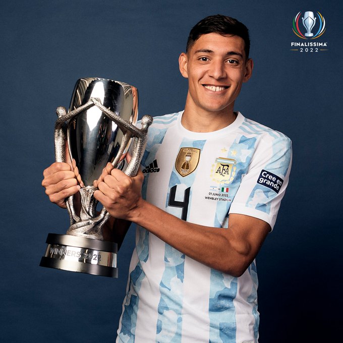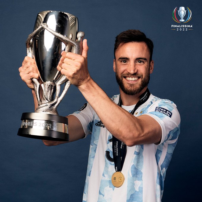 🇦🇷 De izquierda a derecha: los laterales de @Argentina. 🥇🔝 @nico_taglia y Nahuel Molina, campeones de la #Finalissima.
