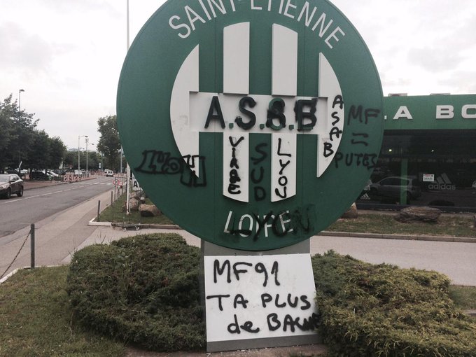 Le logo de la boutique des #Verts tagué dans la nuit #derby #ASSE #ASSEOL francebleu.fr/infos/asse-le-…