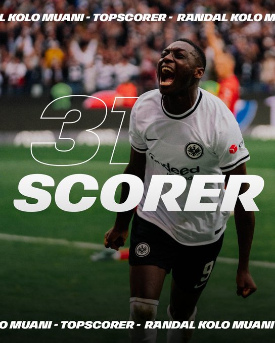 🔥 Randal Kolo Muani in Zahlen: 🔛 32 Spiele 🎯 15 Tore 🧐 16 Assists 🟰 Topscorer der @Bundesliga_DE-Saison 2022/23! 👏 ––––– #SGE | #SGESCF