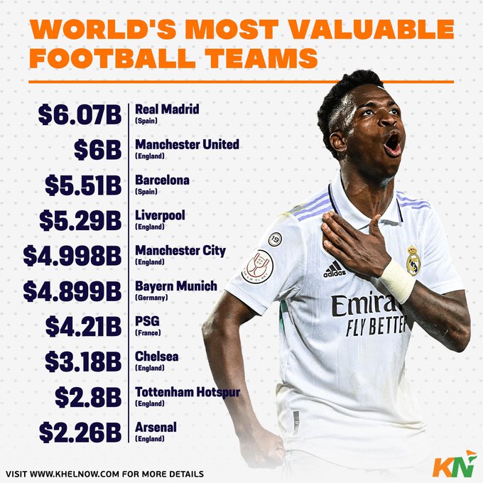 Most valuable football club in the world, per @Forbes 🤑 #realmadrid #manchesterunited #barcelona #liverpool #manchestercity #bayernmunich #psg #chelsea #tottenham #arsenal #football