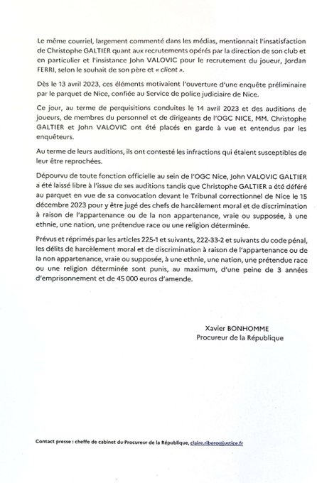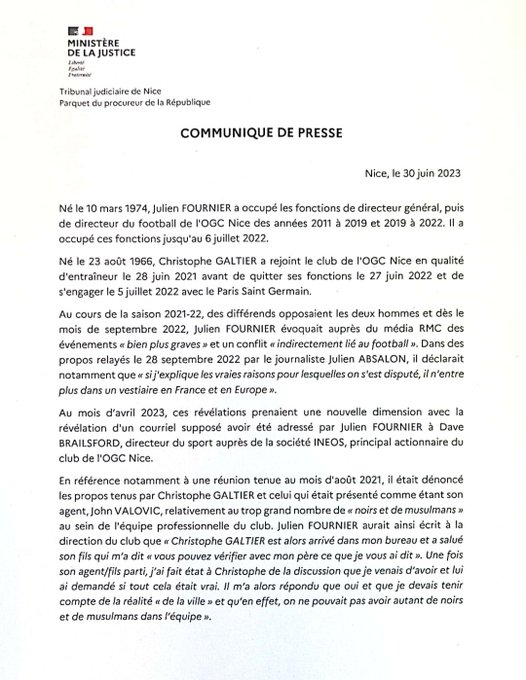 Communiqué de presse du procureur de la République de Nice