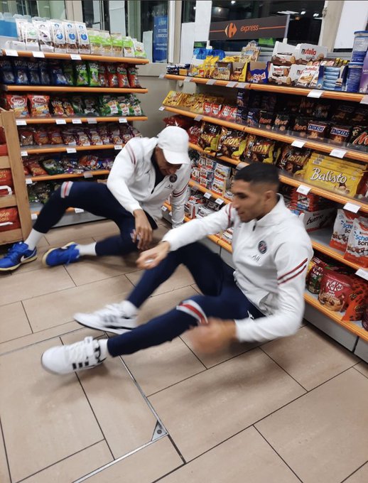 Histoire de se dégourdir les jambes pendant que leur van faisait le plein de carburant, Kylian Mbappé et Achraf Hakimi ont effectivement décidé de pénétrer dans cette station-service de Trappes. Au coeur de la boutique Carrefour Express, les deux amis franciliens ont bien rigolé, avec leurs accompagnateurs. Pendant cinq minutes, Mbappé et Hakimi ont pris la pause aux quatre coins du magasin. « Cela a été assez court. Le chauffeur et le membre du staff ont fait des petites courses et les joueurs ont pris quelques photos. Tout le monde était de bonne humeur. En tant que supporter du PSG, c'était sympa de les voir », avait lâché, sur le site Actu, un client présent à ce moment-là. … un candidat à la mairie de Trappes copie