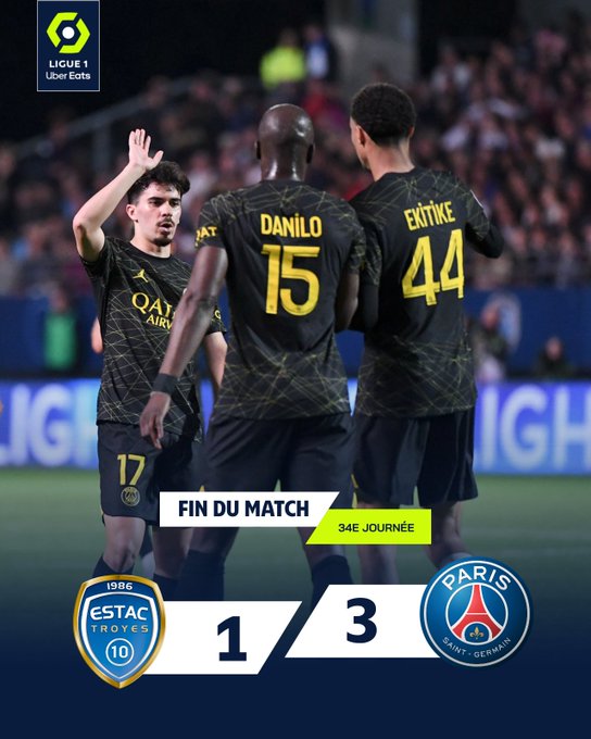 Grâce à ce succès, le PSG fait un grand pas vers le titre de champion de France, vu qu’à quatre journées de la fin, le groupe de Christophe Galtier dispose de six points d’avance sur Lens et huit sur l'OM. Autant dire que les jeux sont faits, comme pour Troyes, qui se dirige vers la Ligue 2 avec 12 longueurs de retard sur le premier non-relégable.
