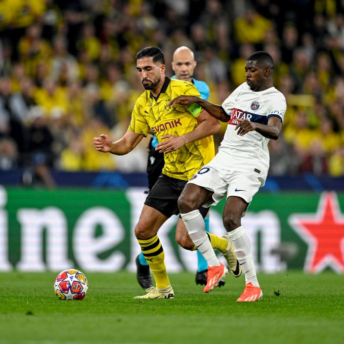 Le PSG arrivait en favori à Dortmund face à un adversaire joueur mais surtout surprise à ce stade de la compétition. Dans la chaude ambiance du stade allemand jaune et noir, les débats sur le terrain étaient moins animés en début de match. Les deux équipes étaient prudentes, notamment Dortmund assez bas sur le terrain pour réguler la vitesse des attaquants parisiens. Sans grosse occasion franche, il fallait un but pour tout débloquer. Il arrivait via Fullkrug, bien lancé en profondeur par Schlotterbeck. L'attaquant allemand fusillait Donnarumma après un duel avec Hernandez. Le défenseur se blessait au genou sur l'action. Dans la foulée, Donnarumma sortait un bel arrêt sur une reprise de Sabitzer (44e).