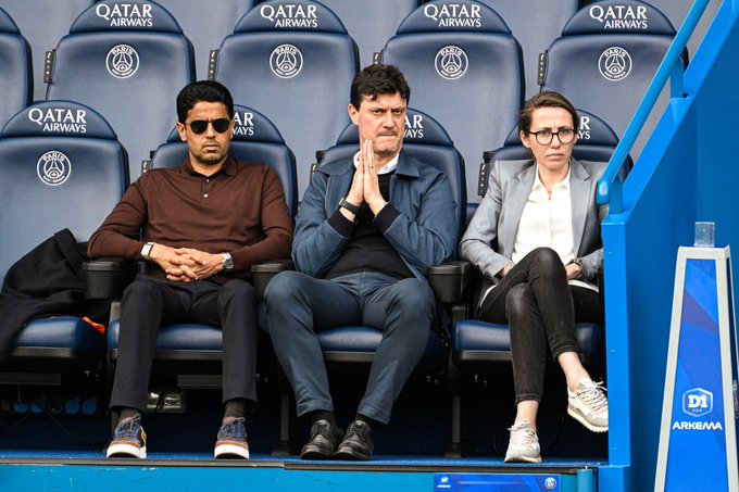 Le président Nasser al-Khelaïfi attentif à toutes les équipes du Paris Saint-Germain dans la course aux titres de cette fin de saison et présent à l'entraînement de nos Parisiennes cet après-midi. 🎟 #PSGOL ➡️ bit.ly/3BFjLFv