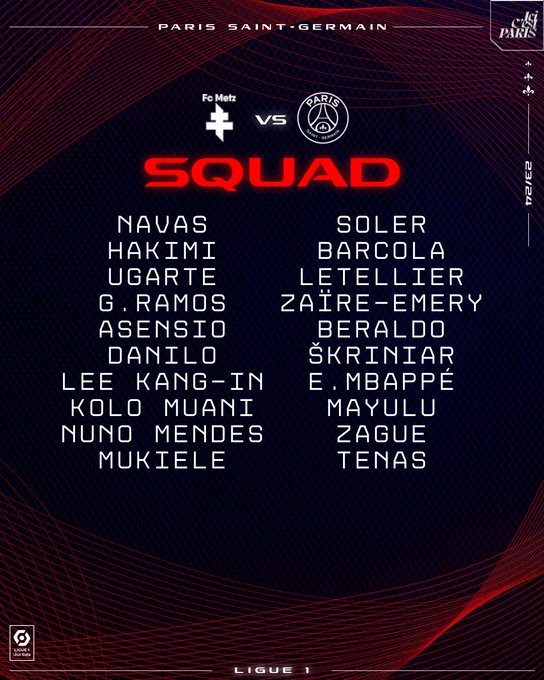 Absent pour le match à Nice de cette semaine, Kylian Mbappé n’est pas non plus convié au rendez-vous contre Metz de ce dimanche soir. L’attaquant parisien, qui avait participé normalement aux derniers matchs contre Dortmund et à ses adieux au Parc des Princes face à Toulouse, est-il mis au repos par prudence en vue de la finale de la Coupe de France face à l’OL ? Ou bien a-t-il un réel souci physique comme cela a été évoqué au point médical du début de semaine dernière ? La possibilité que le PSG et Luis Enrique décident de se passer de lui pour des matchs sans enjeu, que ce soit pour un motif « disciplinaire » après sa brouille avec Nasser Al-Khelaïfi il y a une semaine, ou parce que l’entraineur espagnol a envie de voir d’autres choses en vue de la saison prochaine, est aussi une possibilité. Toujours est-il que le PSG fera sans lui à Metz, dans un match sans enjeu pour les Parisiens, mais pas pour les Lorrains qui doivent prendre un point pour assurer définitivement leur maintien. Ou se méfier d’une éventuelle large victoire de Lorient contre Clermont, pour ne pas gaspiller leur avance à la différence de buts.