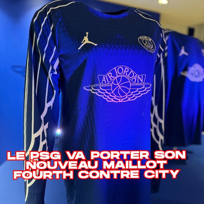 Le Paris Saint-Germain a dévoilé ce mercredi le quatrième maillot de la saison 2024-2025. Une collaboration avec Jordan Brand et une tunique entièrement bleue qui « allie élégance et technique » selon les mots du club parisien dans le communiqué publié ce jour. Le maillot ne fait pas l’unanimité et c’est bien normal puisque tous les goûts et les couleurs sont dans la nature. Ce qui fait en revanche bondir les supporters du PSG, c’est d’apprendre à quelques heures du match que cette nouvelle tunique « four » sera utilisée ce mercredi soir contre Manchester City en Ligue des Champions. Une information du compte spécialisé La Source Parisienne qui a provoqué une vague de réactions négatives.