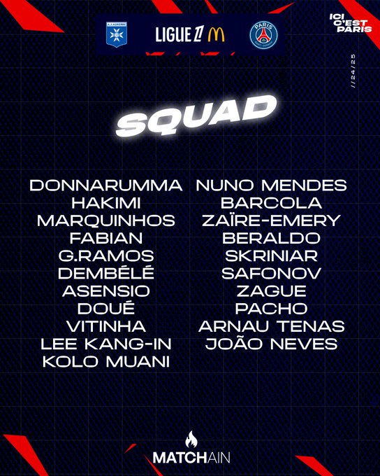 📋 Le groupe pour le déplacement à Auxerre ! 🔴🔵 🔜 #AJAPSG