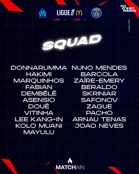 2️⃣1️⃣ Parisiens convoqués pour #LeClassique ! 🔴🔵 #OMPSG