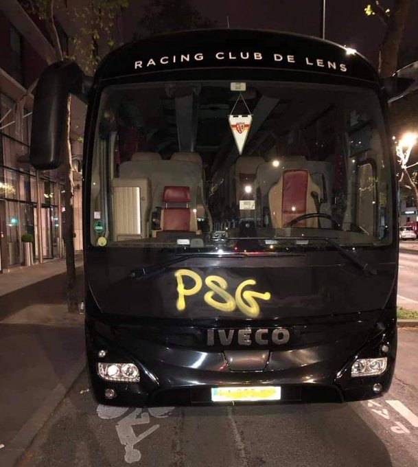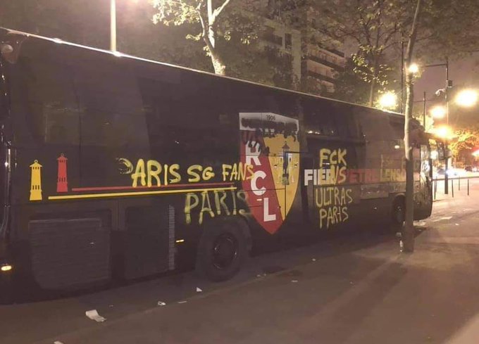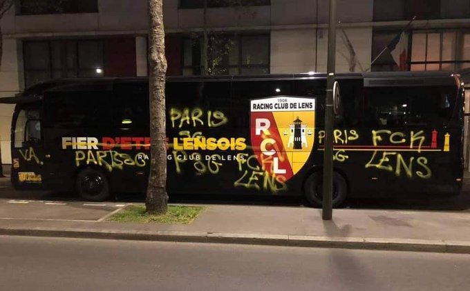 Le bus du RC Lens a été tagué cette nuit 😡😡 #PSGRCL 📸 Arnaud Desmaretz