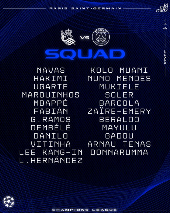 Absent lors du match de vendredi à Monaco, Marquinhos est présent dans le groupe dévoilé par le Paris Saint-Germain pour le match de Ligue des champions mardi soir face à la Real Sociedad. Il en va de même pour Danilo Pereira, lequel était également incertain. Marco Asensio est lui forfait, le joueur souffrant d'un petit souci à l'ischio-jambier.
