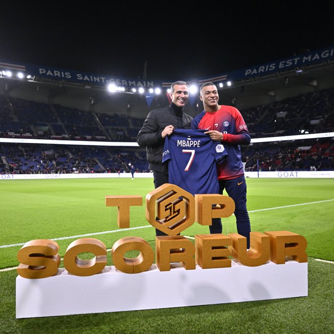 Cette semaine, la Ligue de Football Professionnel a annoncé la création d’un badge nommé S1 qui sera arboré par le meilleur buteur du championnat. Une initiative qui débarque en pleine saison, et qui a pour but, selon la LFP, de « mettre davantage en lumière le meilleur buteur de Ligue 1 ». Vendredi soir, en préambule à PSG-Monaco, Pedro Miguel Pauleta a donc remis à Kylian Mbappé un maillot avec le fameux badge. Le champion du monde 2018 et troisième du Ballon d’Or 2023 arbore donc ce « trophée » et va probablement porter cette marque honorifique durant toute la saison, puisqu’il compte actuellement 14 buts, soit de double d’Akor Adams (Montpellier), et neuf buts de plus que le duo monégasque Golovin-Ben Yedder.