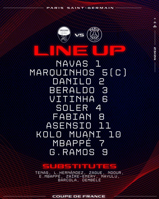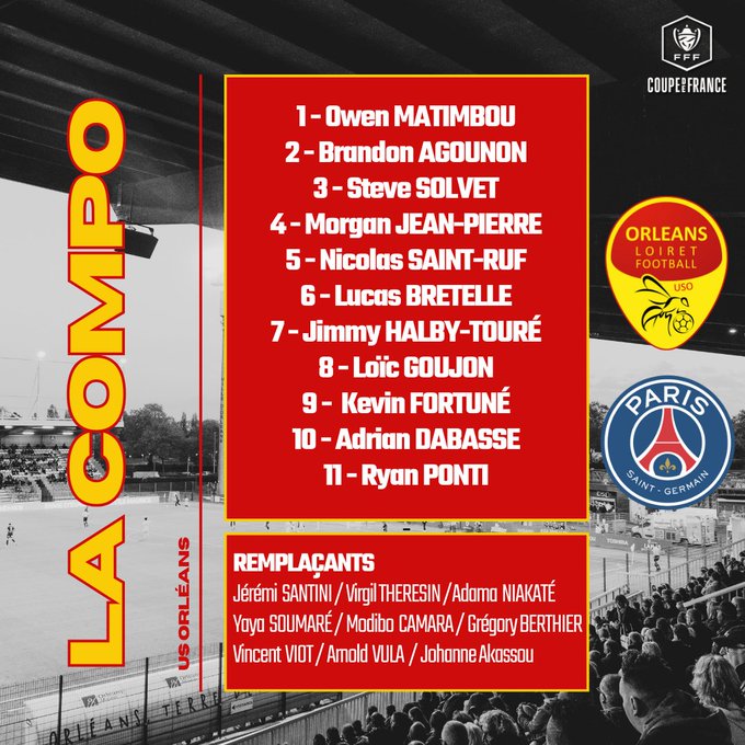 ⚽️👊 𝐋𝐚 𝐂𝐎𝐌𝐏𝐎 de nos Jaunes & Rouges pour leur choc face au Paris Saint-Germain à l'occasion des 16è de Finale de Coupe de France ! 🐝 ⏱️ Coup d’envoi dans 45 minutes ! 📲 Rencontre à suivre en direct sur beIN SPORTS #TeamUSO 🟡🔴