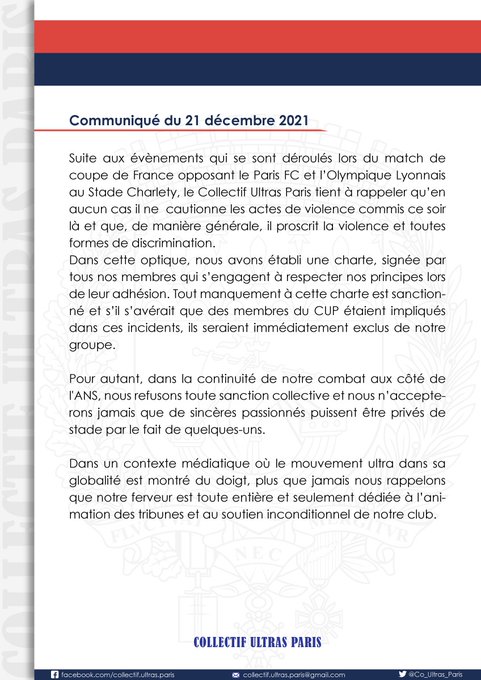 Communiqué du 21 décembre 2021. @FansEurope @A_N_Supporters
