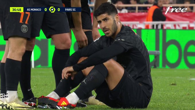 Après seulement 37 minutes de jeu, Marco Asensio a quitté ses partenaires parisiens à Monaco. L'Espagnol s'est assis sur la pelouse de Louis-II, visiblement touché à la cuisse. Il a été remplacé dans la foulée par Bradley Barcola. Un nouveau coup dur pour les Parisiens à quelques jours du huitième de finale retour de Ligue des champions contre la Real Sociedad. En effet, le PSG est déjà affaibli en défense avec notamment un Marquinhos forfait ce soir et incertain mardi prochain.