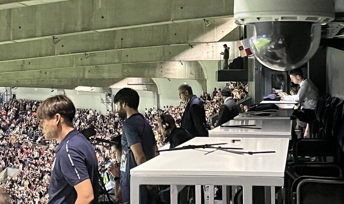 🚨 𝗡𝗘𝗪: Luis Enrique is managing the match against Atlanta from the stands, wearing headsets to communicate with his staff. This way, he has a better view of the game.
