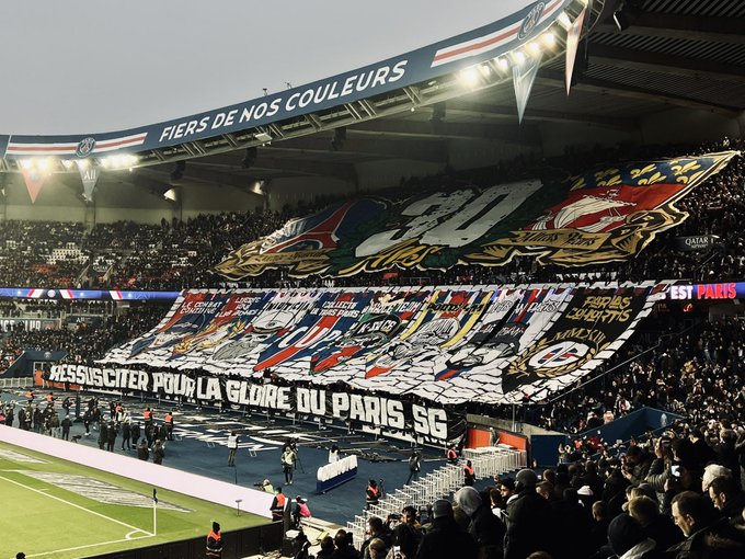… « RESSUSCITER POUR LA GLOIRE DU PSG » ❤️💙 Le Tifo en plusieurs parties exceptionnel du @Co_Ultras_Paris 🔥👏🏽