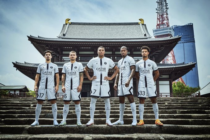 🔝🇯🇵🗼 Nos Parisiens à Tokyo avec le nouveau maillot 𝒂𝒘𝒂𝒚 #PSGxJordan Satoshi Nishimura / 西村 恵 / Photographer / Sports Choreographer / live in TOKYO ❤️💙 #PSGJapanTour2022